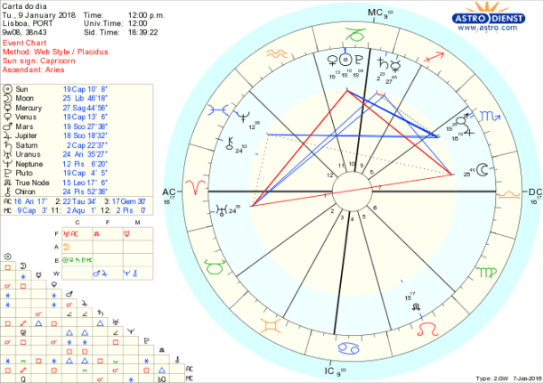 Tal como ontem estamos ainda hoje sob um potente alinhamento de planetas que nos permite fazer verdadeiras revoluções na organização das coisas, nas relações, em casa, no trabalho, nas estruturas de poder. A diferença entre ontem e hoje é que ontem vibramos com a tensão do que tem de ser mudado e hoje libertamo-nos das amarras que ainda nos prendem ao passado e que vão permitir, nos próximos dois dias, redefinir o controlo das situações amorosas, financeiras, políticas. O empenho, força e potencial de mudança da ordem das coisas vem da conjunção de Plutão, Sol e Vénus em Capricórnio, em sextil a Júpiter conjunto a Marte em Escorpião. A Lua, ontem em quadratura aos planetas em Capricórnio e hoje oposta a Urano, sempre em Balança, põe o barómetro das emoções no equilíbrio ou disparidade das relações em que estamos envolvidos, primeiro para que se chegue a um extremo de tensão que force uma transformação, segundo para nos livrarmos de dependências ou de padrões de respostas.