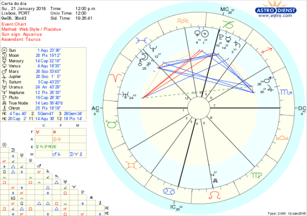 Neste fim-de-semana a sensibilidade está à flor da pele. Não de uma forma errática mas sim vinda das profundidades, exposta à obrigatoriedade de se fazer planos, reorganizar a vida, o trabalho, a casa, as estruturas de que dependemos individual e colectivamente. Tanto no sábado como no domingo a Lua está em Peixes exacerbando sentidos empatias, as artes e a coisas do espírito. Faz sábado e domingo sextis sucessivos a Saturno, Mercúrio e Plutão em Capricórnio, para além de uma conjunção a Neptuno no sábado e trígonos a Júpiter e Marte em Escorpião e conjunção a Quíron no domingo. Temos assim de dar forma aos sentidos e estar prontos para mudanças profundas no controlo de emoções e bens. O quincúncio de Mercúrio ao Nódulo Norte em Leão aconselha-nos a não sermos rígidos e seguirmos o coração mas temos simultâneamente de ser pragmáticos com afectos e investimentos, com Vénus e Sol em Aquário em semi-sextil a Saturno em Capricórnio. Quanto melhor formos capazes de equilibrar sentimentos e razão, melhor partido tiramos das oportunidades do fim-de-semana.