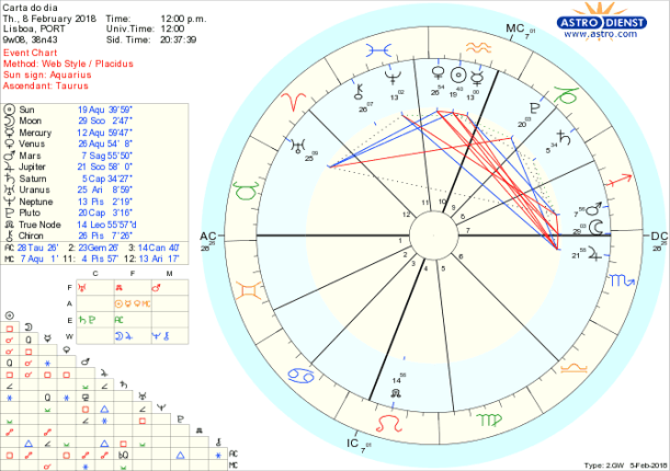 Podemos pela tarde recomeçar a sonhar em viajar, aprender, abrir horizontes, aventurarmo-nos em novos investimentos pessoais ou financeiros desde que representem uma reviravolta naquilo que sabemos que tem de ser mudado.Ou seja, é tempo de ir mais longe, transformando as relações de peso existentes, com a Lua em Sagitário, conjunta a Marte e o seu regente Júpiter em Escorpião. Ideias não faltam com um quintil entre Mercúrio em Aquário e Urano seu regente em Carneiro, mas como também este é regido por Marte, esse afirmar de ideias tem de corresponder a uma visão de futuro a qual queremos dar, com Saturno nem Capricórnio em semi-sextil à Lua no início da tarde, toda uma nova organização com um planeamento que aposta nos benefícios a longo prazo. O Sol e Marte também em quintil dão- nos toda a energia para clamar-mos aos quatro ventos ou a quem nos quiser ouvir as nossas ideias ou intenções para fazer do mundo um mundo melhor ou, pelo menos, o nosso pequeno círculo. É um dia para olhar para a frente e deixar para trás o que já não nos serve.