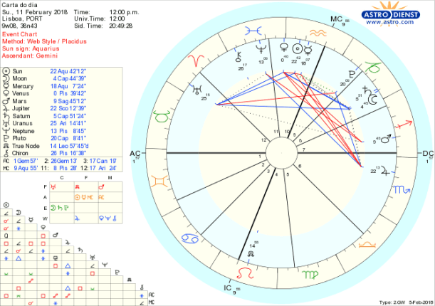 Assim, as liberdades ou aberturas estão na ordem do dia no sábado mas no domingo dois novos aspectos mudam as respostas emocionais. A Lua passa para Capricórnio, em sextil a Vénus que sai do Aquário e entra em Peixes. Vénus em Peixes suaviza todos os sentimentos, apela à compreensão, compaixão, dedicação às questões de interesse humanitário enquanto que a Lua em Capricórnio é fria, pede um cálculo cuidado das consequências e uma ordem a ser seguida. Se não encontrarmos uma boa causa a defender de forma estruturada teremos dificuldade em compatibilizar emoções e ambições. A Lua pelo meio-dia de domingo faz conjunção a Saturno e há que condicionar os impulsos às obrigações, tratar da ressaca da véspera. Quanto melhor organizarmos as coisas no domingo e mais friamente pensarmos o que queremos e o que podemos ou não controlar no futuro, mais facilmente, na segunda-feira, quando a Lua fizer conjunção a Plutão, em sextil a Júpiter e semi-sextil a Mercúrio e ao Sol, sentiremos as novas oportunidades que se estão a abrir.