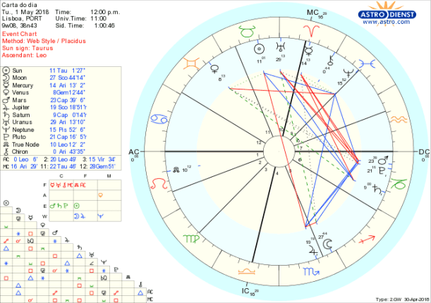 Há tensões grandes no ar que começam com a confusão de possibilidades que se nos oferecem e que terminam com o confronto com a realidade e a necessidade de planos a longo prazo em vez de fugirmos ao que custa. Onde investir? De que gostar? Em que relações assentar? Vénus em Gémeos está em quadratura a Neptuno em Peixes, sesquiquadrada a Marte e a Plutão em Capricórnio e quincúncio a Saturno nesse mesmo signo. O resultado é sentirmo-nos baralhados ou entalados entre o que gostamos que fosse e o que pode ser, sem espaço para ligeirezas e com um grande foco nos limites, responsabilidades e importância de agir no momento certo- o que não é compatível com opções múltiplas mesmo que isso seja o mais apelativo. A Lua em Sagitário pela tarde leva-nos a procurar novas verdades, abrir horizontes que possam ajudar a ultrapassar os condicionamentos mas é preciso não confundir o estudo de propostas de futuro com fugas para a frente. A chave do dia está em entender o que podemos e devemos organizar.