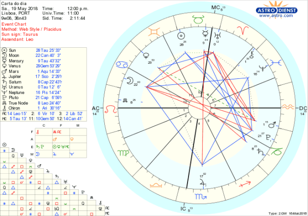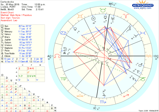 - em primeiro lugar a tensão entre o que queremos ser e os limites das nossas capacidades – ilistrado pela quadratura/conflito interior entre o Nódulo Norte em Leão e Mercúrio em Touro que também sublinha a dificuldade em fazer investimentos satisfatórios