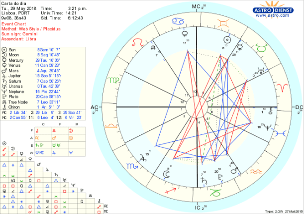 O grande desafio desta Lua Cheia de hoje que do Sagitário se opõe ao Sol em Gémeos é o de sabermos escolher as palavras certas ou o negócio certo, que correspondam a valores seguros e o de ser capaz de os comunicar, sem exagero mas com impacto, segundo aquilo que aspiramos transformar. A Lua em Sagitário leva-nos a querer ir mais longe, investir melhor, descobrir a verdade, os princípios, conquistar conhecimento, a viagens da mente e do corpo mas oposta ao Sol em Gémeos sentimos que temos de ficar por mais perto, analisar opções e ser capaz de comunicar de forma simples a complexidade do que intuímos ser o caminho. Um belo trígono de Água entre Vénus em Caranguejo, Júpiter em Escorpião e Neptuno em Peixes vai desde hoje e nos próximos seis dias alimentar o sonho de regenerarmos de forma ideal a casa, a família, o país, tudo que represente para segurança emocional ou valores seguros. Assim, nesta Lua Cheia aquilo a que aspiramos tem de ser reconvertido com sentido prático de forma a ganhar nova segurança emocional, doméstica, financeira. Bem escolher as palavras ou os investimentos é o que nos faz passar o exame do sesquiquadrado de Mercúrio a Vénus de forma a inovar sem entraves com Sol e Lua respectivamente em trígono e sextil a Marte em Aquário, regido por Urano recém entrado em Touro. Mercúrio entra amanhã em Gémeos para podermos continuar a comunicar e a negociar.