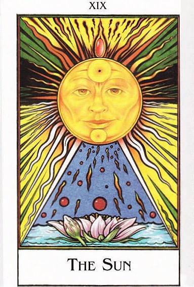 O Arcano Maior 19, o Sol, é o Eu na sua afirmação perante a vida e os outros, em Eu que se dá a conhecer, se partilha e se expande. A vergonha, a sobranceria e também a falsa modéstia não sobrevivem nesta luz, dando antes lugar à auto-estima e ao desejo de nos entregarmos de modo genuíno à vida e aos outros.
