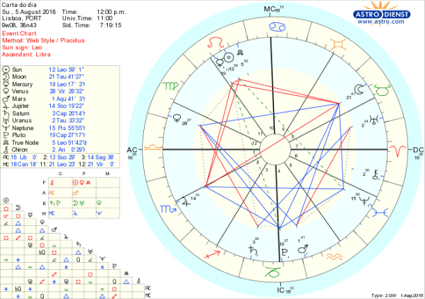 Neste fim-de-semana são os prazeres simples e a satisfação prática que nos movem mas nem sempre aquilo que encontramos corresponde aquilo que somos ou queremos ter. Essa tensão vem no Sábado da quadratura entre Lua em Touro e Sol em Leão e vai ser preciso esperar por Domingo para ter a satisfação do dever cumprido com a Lua em trígono a Plutão em Capricórnio a facilitar resultados transformadores. Mas apesar da teimosia da Lua este fim-de-semana, um trígono de Júpiter em Escorpião a Neptuno em Peixes abre-nos as portas para outras dimensões onde temos acesso ao que queremos mudar. Isso vai ser patente no sábado, pela tarde, quando a Lua fizer oposição a Júpiter e exagerarmos atitudes e exigências. A tendência para o exagero está latente e o controlo pessoal é um requisito para não pagar caro as consequências, com o Sol em Leão até terça feira em quadratura a Júpiter em Escorpião, a trazer tanto de exuberância como de embaraço.