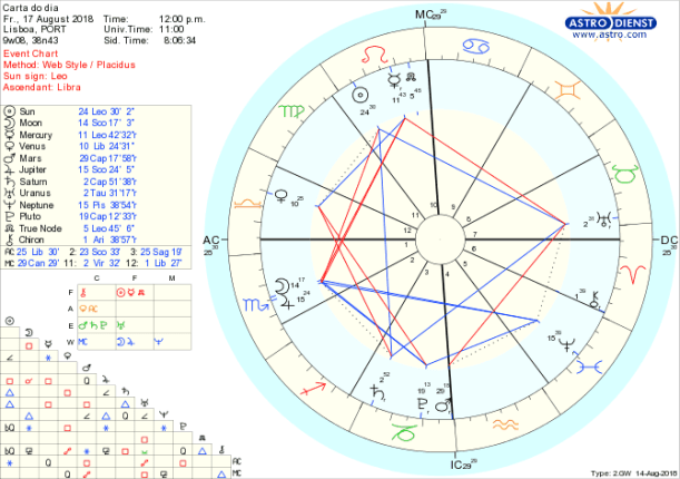 As emoções têm os maiores altos e baixos neste dia de revoluções, revelações e em que perder e ganhar ganham outro sentido. Sarar, melhorar, transformar, mudar de vida são verbos para dimensões em que nada pode ser superficial. Sexo, dinheiro, poder, morte e renascimento, todas as áreas em que se nos viram as entranhas com a intensidade emocional que suscitam, estão hoje exacerbadas com a conjunção da Lua a Júpiter em Escorpião, em trígono a Neptuno em Peixes -que simboliza o ideal a atingir – e em sextil a Plutão em Capricórnio que simboliza a oportunidade de conseguir mudanças de fundo nas estruturas de vida. O Sol em Leão a avançar para um trígono a Saturno em Capricórnio promete estabilidade entre o ser e o estar mas Vénus em Balança a avançar para uma quadratura a Plutão em Capricórnio diz-nos que é preciso criar novo equilíbrio nas relações. O que vivenciarmos hoje com a Lua conjunta a Júpiter em sextil a Plutão já nos dá informação sobre onde vamos ter de abrir mão e o que podemos conquistar na Lua Cheia de 27 quando Vénus fizer o aspecto exacto a Plutão.