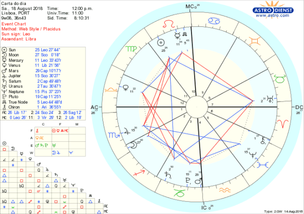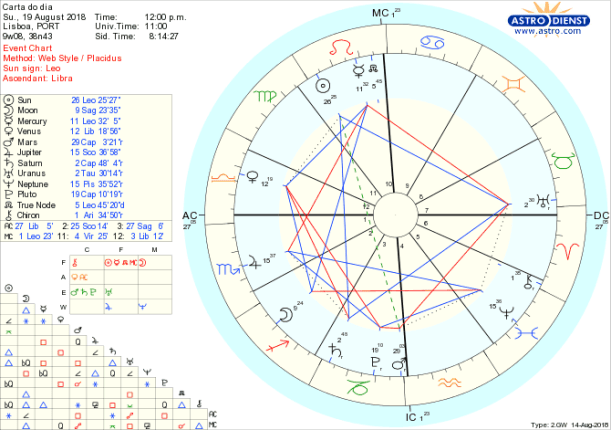 Tanto sábado como domingo, Júpiter em trígono a Neptuno em signos de Água também contribuem para resultados felizes no que fizermos para seguir o sonho e melhorar as perspectivas de vida e Vénus em Balança em sextil a Mercúrio garante a possibilidade de a dois, comunicarmos quem somos e a lógica que nos move sem provocar conflito nem desequilíbrio nas relações. Mas atenção, algo está a mudar nessas relações e toda a comunicação justa até lá contribui para redução de tensões quando Vénus na próxima Lua Cheia de 29 fizer quadratura a Plutão. É um bom fim-de-semana para nos abrirmos a possíveis mudanças muito em breve, em situações contratuais, regras de relacionamentos e divisão de bens financeiros. Por enquanto é para avançar, de coração aberto com a Lua no Domingo em sextil a Vénus e lógica afinada pelo olhar do outro graças ao sextil de Vénus a Mercúrio.