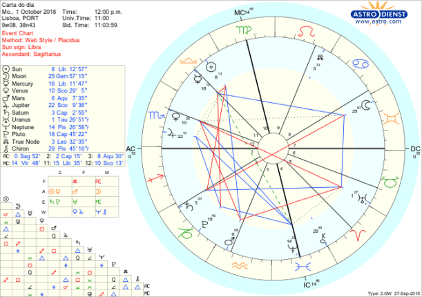 Ir ao fundo da lógica das relações, esclarecer e entender quem está alinhado com quê e com quem, nas relações amorosas, financeiras, contratuais ou políticas é não só inevitável como desejável neste arranque de semana. Sol e Mercúrio estão em Balança a pôr o foco na busca de acordos ou equilíbrio nas relações mas Mercúrio faz uma quadratura a Plutão em Capricórnio e isto obrigada a mergulhar na sombra dos acordos, no dito e não dito para esclarecer posições e revelar as verdades que Júpiter em Escorpião ainda em sextil a Plutão exige. A Lua de manhã e princípio da tarde ainda em Gémeos estimula os contactos, debate ou troca de informações mas a sua entrada em Caranguejo ao final do dia, em oposição a Saturno em Capricórnio e sextil a Urano em Touro mostra que é preciso criar novas bases de entendimento que nos dêem segurança, de forma inteligente e inovadora mas dentro do respeito das regras e limites. Não pode ser tudo como queremos, tem de ser como pode ser e há que ser capazes de ultrapassar a impaciência ou frustração, em nome do dever cumprido.