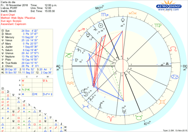 As energias dominantes mudam hoje com Vénus que esteve retrógrada a ficar estacionária e depois directa, Mercúrio a entrar retrógrado e a Lua e Marte em ingresso em Peixes. O pano de fundo continua a ser o Sol em Escorpião a iluminar a necessidade de fazer mudanças de fundo na partilha de bens e poderes e Saturno em Plutão em Capricórnio a mostrar que essas mudanças têm de ser estruturais e transformar-se numa nova ordem, um caminho que não fica completo senão em 2020 quando estes dois planetas abrirem um ciclo por se virem a encontrar então em conjunção.Até lá ainda há muito caminho a percorrer e para definir a verdade que queremos que nos guie podemos contar agora com Júpiter em Sagitário, planeta que estimulará a expansão desse importante novo ciclo de ordem de 2020 quando também vai fazer conjunção a Saturno e a Plutão. Mercúrio que rege a lógica e as trocas de ideias necessárias à transmissão de posições, bens e poderes entra hoje retrógrado em Sagitário, até dia 7 de Dezembro numa agenda clara de que temos que repensar os planos de futuro que temos estado a desenhar. Para o fazer vamos precisar de ter apoios, formar alianças e encontrar uma harmonia, já que também temos estado a reflectir sobre isso com Vénus retrograda que ao entrar hoje directa nos dá a luz verde para procurar novos equilíbrios nas relações, nas contas e no estabelecimento de acordos. O que é que estamos a defender? Com o Nódulo Norte em Caranguejo e a Lua seu regente conjunta hoje a Marte em Peixes, há a vontade forte mas tingida de ilusão de que o objectivo é criar novas bases de segurança emocional, familiar, nacional. As “obras” são feitas no nosso íntimo, em casa, na protecção do que é nosso. Com Urano retrógrado em Carneiro em quadratura ao Nódulo Norte e sextil a Marte que o rege, temos a oportunidade de corrigir iniciativas passadas, procurando dar-lhes nova forma graças ao trígono de Urano a Saturno. Mas não deixa de ser fácil não nos perdermos pelo caminho, distraídos, iludidos, pela quadratura de Mercúrio a Neptuno. Hoje as energias que nos orientam mudam mas não são claras. O desafio do dia é não perder de vista os objectivos para 2020, que novo ciclo queremos organizar e ser o mais pragmático possível.