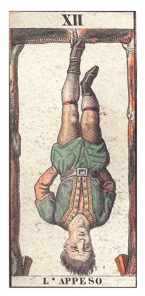 Em circunstâncias adversas, perante a impotência, precisamos de ter a sabedoria de nos imobilizar. Não é uma imobilidade paralisante de animal acossado, antes um acto de vontade, que nos exige a capacidade de transcender os problemas a que não conseguimos responder, numa atitude de sacrifício e devoção. Ficamos suspensos, e a carta do Dependurado representa essa suspensão sofrida que aceitamos assumir. De pernas para o ar, em postura sacrificial, o Dependurado está imóvel e assiste ao desenrolar dos acontecimentos que escapam ao seu controle. Ao mesmo tempo, elevou-se espiritualmente.