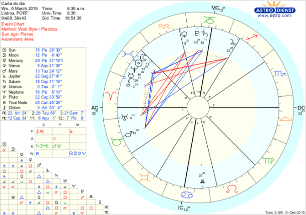 A segunda quinzena de Fevereiro é mais turbulenta que a primeira.No dia 18 Venus faz conjunção a Saturno, depois dia 18 faz conjunção a Plutão, isto com Marte recém entrado em Touro que é regido por Vénus e o Sol quadrado a Urano. Resultado, percebemos que aquilo a que dávamos valor e seriam apostas seguras tem de se adaptar a uma nova realidade e estrutura. Quando mais depressa percebemos melhor porque em Março Urano entra em Touro, no dia 6, que coincide com uma Lua Nova conjunta a Neptuno em Peixes e confusão pode ser enorme…