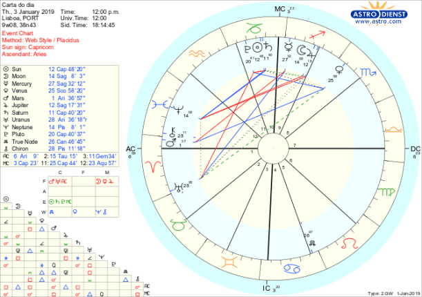 A ilusão de que estamos no topo do mundo pode ser grande hoje e, quanto maior, maior a necessidade- e mesmo a obrigação – de olhar para os alicerces que temos de assentar para atingir essasprojecções. Em quadratura a Neptuno, a Lua conjunta a Júpiter em Sagitário vem com a fantasia e as asas para apostar em novos horizontes, afirmar grandes verdades, expôr sensibilidade e ideias com um máximo de abrangência mas o Sol desde ontem conjunto a Saturno em Capricórnio força o pragmatismo, o planeamento e a responsabilidade de bem estruturar o que queremos de futuro. Vénus continua em Escorpião em bom aspecto a Plutão e a Quíron o que traz oportunidades de, com paixão, irmos ao fundo do que tem de ser mudado e com isso sarar dores antigas. Marte em Carneiro é o Fogo da acção mas não nos precipitemos. No eclipse do Sol e Lua Nova do próximo dia 6 então sim podemos lançar novas bases. Até lá há que nos abrirmos a conhecimentos, ideias e dar forma à ambição, sempre com um máximo de seriedade e consciência de que nem tudo é possível. Mercúrio em quadratura a Quíron ilumina-nos sobre erros passados.