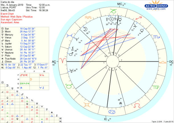 Uma poderosa concentração de planetas em Capricórnio obriga-nos a mudanças de fundo na organização das nossas vidas individuais e colectivas. Esta influência vem desde a Lua Nova de dia 6 e a ela se junta hoje uma quadratura de Marte em Carneiro a Mercúrio em Capricórnio e paralelo de Marte a Plutão que aguarda a conjunção do Sol dentro de dias e a de Saturno em Janeiro do próximo ano. É assim grande o simbolismo de que se está a construir devagar sobre os escombros do que já não serve propósitos de futuro assim como nada disto acontecer sem conflitos externos e a necessidade de uma relação saudavelmente crítica da zanga que sentirmos. No plano colectivo os conflitos de poder têm tendência a agravar-se devido as estes aspectos e à quadratura de Urano em Carneiro ao Nódulo Norte em Caranguejo que traz tensão entre os impulsos de liberdade e a necessidade de segurança. A Lua começa o dia em Aquário mas termina em Peixes, levando-nos das preocupações com o mundo que nos rodeia para o da sensibilidade e da alma, um complemento necessário às questões de ordem prática ou organização que Mercúrio, Saturno, Sol e Plutão em Capricórnio suscitam. Vénus em Sagitário em trígono a Marte permite-nos abrir caminho em nome do que acreditamos.