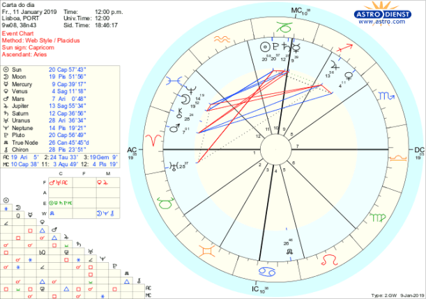 Esta sexta-feira é importante para pormos, o que está a mudar, em contexto e dar-lhe seguimento. Desde o início do ano, com a conjunção do Sol a Saturno, passando pela Lua Nova em Capricórnio dia 6 e até ao próximo dia 16 quando o Sol se opuser ao Nódulo Norte em Caranguejo, estamos a ser chamados a afinar o foco sobre as transformações de fundo, estruturais, em casa, trabalho ou na política, que demorarão até 2020 para produzir efeito. Estamos por isso a fechar portas antigas para abrir novas e isso implica uma nova consciência de quem somos, da nossa energia vital e de como pretendemos organizar-nos a médio e longo prazo. Hoje é vez do Sol fazer conjunção a Plutão, um aspecto potente de mudanças profundas de consciência e de poderes, suavizado por um sextil à Lua em Peixes que tinge de sonho e emoção o que pode ser duro para quem não estiver pronto a deixar padrões rígidos de gestão das questões pessoais ou da ordem colectiva. É um dia de metamorfoses em que devemos abraçar a evolução. Vénus e Júpiter em Sagitário encorajam o investimento a longo prazo no que acreditamos mas Mercúrio quadrado a Marte obriga-nos a escolher bem as palavras para justificar essas opções.