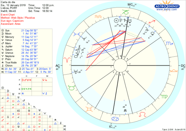 É neste pano de fundo que este fim-de-semana, com a Lua em Carneiro, vamos desejar querer fazer coisas, ter iniciativas, seguir os impulsos que nos levarão nesse caminho mas tal as circunstâncias são tais que não pudemos fazer tudo o que nos apetece e as irritações, bloqueios, frustrações são inevitáveis. Querer cumprir o desejo de ir mais longe vem do trígono da Lua a Vénus e a Júpiter em Sagitário mas o conflito e dificuldades vêm da conjunção da Lua a Marte em Carneiro e de uma série de quadraturas que a Lua faz sábado e domingo a Mercúrio, Saturno, Plutão e Sol em Capricório, um stellium de seriedade, obrigações, planeamento, organização a longo prazo do que se pretende transformar profundamente nas estruturas de vida que nos regem, em casa, trabalho ou na política. Como Vénus em Sagitário faz uma semi-quadratura a Plutão acresce a tensão de termos de ir investigar porque é que desejamos o que desejamos como se a liberdade de expressão da verdade pessoal tivesse de ser validada por forças maiores de forma a que nada seja supérfluo ou ligeiro no propósito de mudar. É um fim de semana em que vai dar trabalho justificar onde queremos chegar, tanto a nós próprios como aos outros..