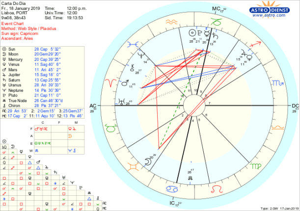 O mais importante hoje é sermos capazes de ir ao fundo das questões de ordem, organização, estrutura, poder, analisar sombras e possibilidades e estar pronto para romper com lógicas antigas, até à Lua Cheia e eclipse de segunda-feira próxima. Hoje, Mercúrio – que rege a Lua em trânsito em Gémeos – faz conjunção a Plutão em Capricórnio ao mesmo tempo que o Sol está em quadratura a Urano e sextil a Quiron. O que isto indica é que somos movidos – mesmo que de forma intempestiva ou compulsiva – a resolver feridas e carências de compreensão e pertença. Vénus em trígono a Marte, praticamente conjunta a Júpiter em Sagitário e quadrada a Neptuno em Peixes, colora de entusiasmo, sonho e desejo de projectar o futuro todas as iniciativas mas isso não quer dizer que seja possível levar por diante esses gestos porque Marte em Carneiro está em quadratura Saturno em Capricórnio o que significa claramente a frustração de tudo o que for fora de regra, mais ainda porque a Lua em Gémeos oposta a Vénus e Júpiter exacerba a tendência para o exagero. Um dia para com um máximo de controlo descobrirmos males a resolver, revelarmos o nosso melhor e procuramos o caminho que nos dê maior segurança.