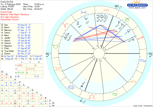 A Lua Nova da madrugada passada abriu muitas possibilidades. Agora há que planear, semear, organizar, até dia 19, à Lua Cheia para então nos dedicarmos aos detalhes. Esta Lua Nova marcou não só o sagrado Imbolc celta que celebra a chegada da Primavera, vida, criatividade, como foi também o arranque do ano chinês do Porco, um símbolo de terra, de riqueza, generosidade mas também de impaciência…Estamos, por tanto símbolismo de Leste a Oeste, num portal de transformação que se anuncia positivo pelos aspectos astrológicos que envolve. Tal como ontem o Sol, Mercúrio e a Lua continuam em Aquário. com a Lua hoje em sextil a Marte e a Urano em Carneiro o que permite tomar iniciativas, inovar com os olhos postos no mundo melhor que queremos construir para nós próprios e para o colectivo. Esta generosidade de propósito que se encaixa bem no simbolismo do Porco, vem nos astros pelo sextil do Sol em Aquário a Júpiter em Sagitário enquanto que o desejo de riqueza estruturada é ilustrado pela presença de Vénus em Capricórnio. Não queremos apenas ter por ter, queremos ter uma ordem, alicerces, poder, para construir sobre essa riqueza e Saturno e Plutão em Capricórnio reforçam essa perspectiva conservadora do desejo. Quanto à impaciência, pela quadratura de Marte a Plutão, é preciso saber gerir, de forma a que as tensões de transformação existam apenas pela tensão do próprio processo e não pela resistência a forças maiores ou impulsos pouco pragmáticos. O semi-sextil de Mercúrio a Plutão ajuda-nos a descobrir hipóteses de mudar e faz-nos chegar informações às quais apenas temos que estar atentos para entender a influência que podem ter na construção da nova realidade pessoal num novo modelo colectivo.