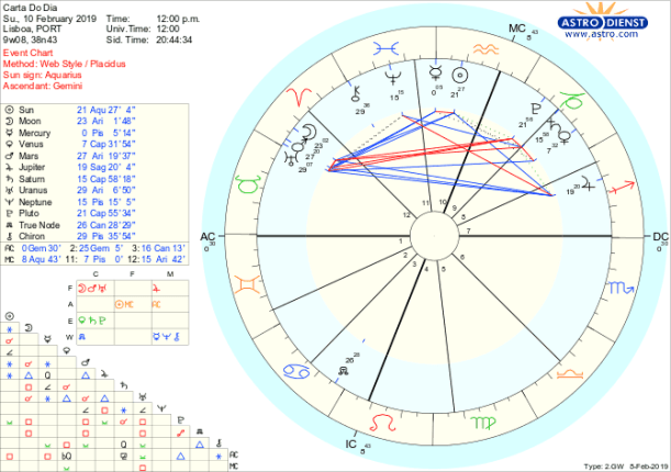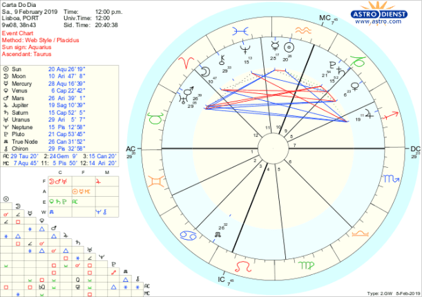 Assim, as mudanças que ocorrem por nossa própria iniciativa, em casa, no trabalho, apesar do entusiasmo, sofrem verdadeiros banhos de água fria pela quadratura a Saturno e estamos sujeitos aos sentimentos mais intensos de contrariedade pela quadratura a Plutão. Estamos à procura de segurança emocional e doméstica, familiar ou nacional, que nos ajude a situar confortavelmente no mundo em que estamos inseridos -com o Sol em Aquário- e tudo se joga na quadratura da Lua, Marte e Urano ao Nódulo Norte em Caranguejo. A melhor maneira de encarar estas tensões é a de ignorar os estados de alma e fazer apenas o que pode ser feito, da melhor maneira, mais prática e que represente um melhor investimento a longo prazo, o que é facilitado por Vénus em Capricórnio. O sextil de Saturno a Neptuno dá-nos a oportunidade de tornar os sonhos realidade desde que tenhamos os pés bem assentes em terra.