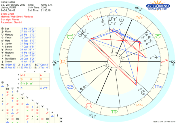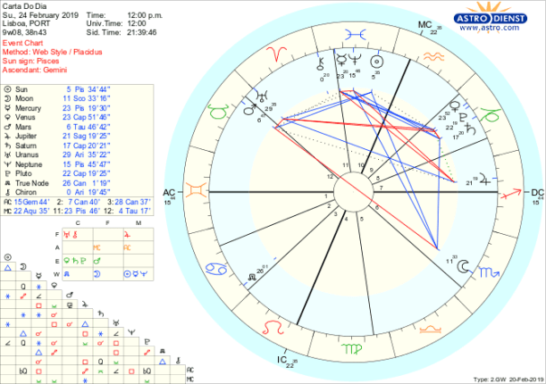 É um fim-de-semana em que os sentimentos são intensos já que temos de lidar com a organização de mudanças significativas na ordem das coisas, em casa, trabalho ou sociedade e em que o controlo que temos ou não desses processos pode impelir-nos a ir longe demais e responder com passionalidade excessiva ao que sentirmos como ameaças à realização dos sonhos, tal qual os projectamos. Despesas inesperadas são outra possibilidade e naturalmente é necessária flexibilidade nas respostas – o que não é fácil com Vénus em Capricórnio conjunta a Plutão tanto Sábado como Domingo e a Lua também sob a influência de Plutão, a partir da tarde de Sábado em Escorpião que Plutão e Marte regem. Há assim este fim-de-semana muita visceralidade nas atitudes emocionais e disputas, separações ou despesas prováveis quando a Lua fizer quadratura ao Nódulo Norte e oposição a Urano em Carneiro e a Marte em Touro.