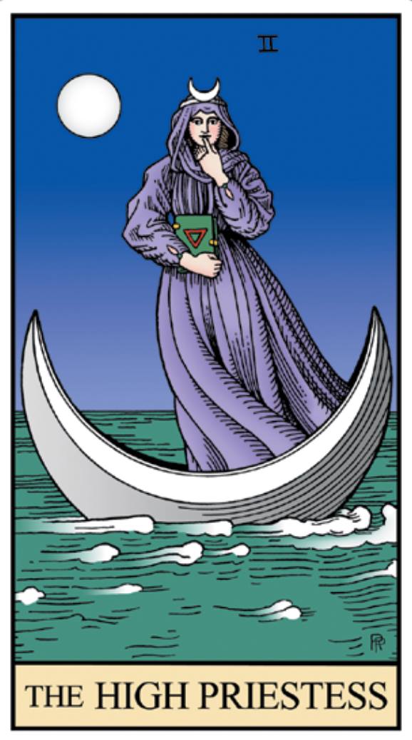 A Sacerdotisa vem trazer-nos a energia intuitiva e receptiva que se procura no silêncio e está intimamente ligada ao conceito de subconsciente. Ela pede calma e interiorização, como que uma gestação mental que se não processa com palavras. É a fonte das ideias que ainda não nasceram, dos sentimentos que virão a exprimir-se, o vivenciar da sombra como preparação para a luz.