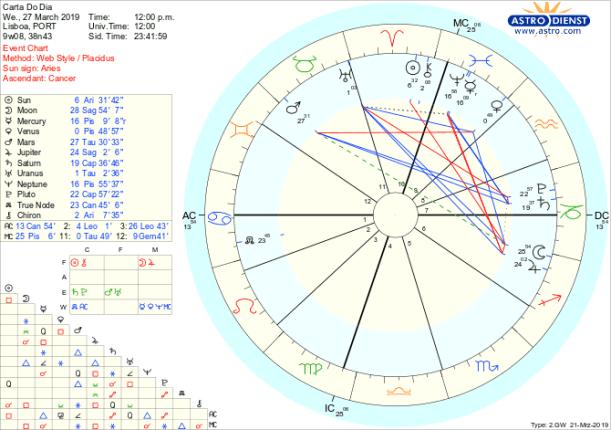 Vénus vai ficar em Peixes até ao dia 20 de Abril num ciclo amoroso ou de compaixão generosos, espirituais, incondicionais. Por isso mesmo é preciso ter atenção à tendência para dar demais, aceitar coisas que normalmente não aceitaríamos, concordar mesmo se no fundo discordamos. A energia de Vénus em Peixes pode ser maravilhosa mas não podemos ficar reféns de utopias. Como o Sol vai estar em Carneiro durante o mesmo período, o impulso de agir acaba por ser temperado pela generosidade desta Vénus o que pode provocar menos conflitos. Podemos assim esperar que, nas próximas semanas, as tensões que venham a ocorrer – em particular de 12 a 14 de Abril quando o Sol fizer quadratura a Saturno e Plutão- possam ter soluções baseadas na boa-vontade das partes mas há que desde já gerir esse desejo de dar satisfação universal sem sacrificar o desejo pessoal.