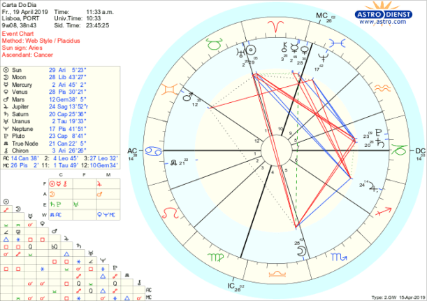 Depois desta Lua Cheia, do extremar de posições entre o eu e os outros, entre o masculino e o feminino, entre a vontade cega e o compromisso, as energias mudam com a entrada do Sol em Touro, de Vénus em Carneiro e da Lua em Escorpião. O fim-de-semana anuncia-se assim como um ponto de viragem em que, em vez de queremos fazer, passamos a querer ter e a apaixonadamente perseguirmos esse objectivo através de contactos e escolhas de opções com Marte regente do Carneiro e do Escorpião em trânsito em Touro. Uma vez mais a flexibilidade é necessária porque o Sol faz conjunção a Urano e o que pensávamos que eram valores seguros podem deixar de o ser, obrigando a abrirmo-nos a novos valores que desde os compromissos desta Lua cheia surgem já como necessários.
