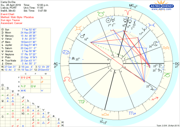 É para fora que nos viramos este fim de semana à procura de ecos para os nossos sentimentos e desejo de inovar, sair da rotina, encontrar novos valores aos quais dar valor, tentando materializar o ensejo de novos rumos. Mas o sucesso desta aventura depende do trabalho interior que formos fazendo. Tanto sábado como domingo a Lua está em Aquário, regida por Saturno em Capricórnio e Urano em Touro conjunto ao Sol, símbolos claros de que é através do que é palpável, do que se organiza ou inova que podemos pensar em abrir-nos ao mundo. A dificuldade está em equilibrar o sentido de urgência em seguir em frente, impulsionado por Vénus e Mercúrio em Carneiro em aspecto à Lua, com a necessidade de interiorizar todos os desenvolvimentos dos últimos meses com Saturno respectivamente estacionário e retrógrado até Setembro/Outubro. De facto, a única coisa que podemos fazer até lá é terminar o que está pendente, usufruir do que fizemos ou planear passos seguintes, com atenção a não exagerarmos mesmo se puxados para isso pela oposição de Marte a Jupiter, de Gémeos para Sagitário: tanto em casa como na política não podemos prometer mais do que o que de facto podemos dar e a quadratura de Marte a Neptuno tinge de fantasia e ideologia todos os discursos enquanto o Nódulo Norte em Caranguejo apela tanto à segurança emocional como aos nacionalismos. É preciso mesmo reflectir antes de agir ou votar…