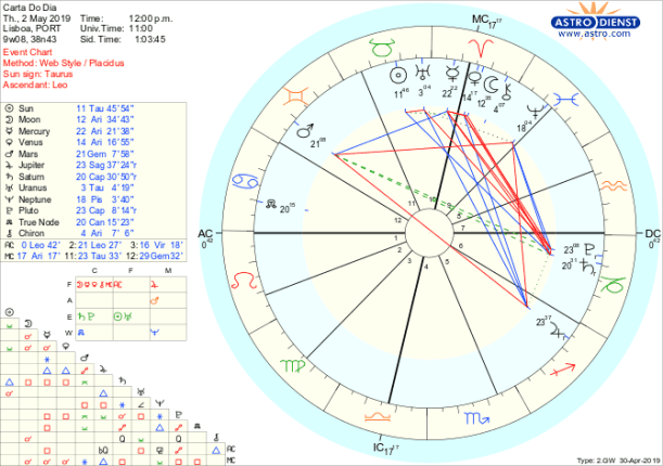 Até domingo vamos por isso sentir tanta mais frustração quanto mais estivermos agarrados a padrões antigos de comportamento e de segurança. Hoje e amanhã, com Mercúrio quadrado a Plutão, vamos querer não deixar pedra por virar e ir ao fundo das questões porque tendemos a suspeitar de tudo e de todos, mas isso faz-nos falar demais com o sextil de Mercúrio a Marte e as disputas são inevitáveis com o aspecto da quadratura, o todo exacerbado por um trígono de Mercúrio a Júpiter. Não é definitivamente um bom dia para negociar mas é um dia para com honestidade e persistência prepararmos um terreno mais sólido em que nos sintamos mais apoiado quando o Sol na próxima semana, depois da Lua Nova, fizer a partir do Touro trígono a Saturno e a Plutão.