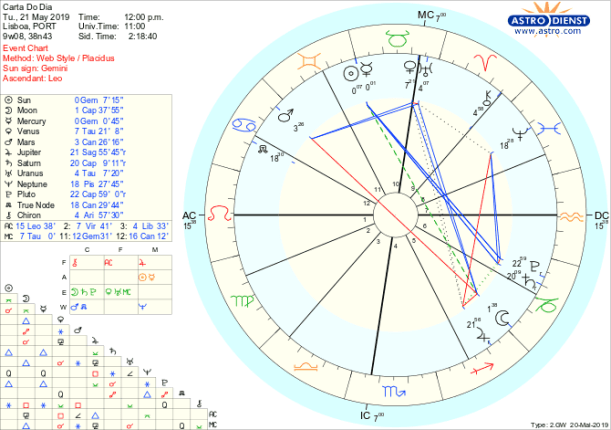 Temos ambições e é sobre elas que vamos falar, comunicar, explorar opções, negociar, para garantir que se cumpra o desejo de mudança, de corte com o passado e criação de novas bases de segurança. Isto acontece com a entrada hoje em simultâneo da Lua em Capricórnio e de Sol e Mercúrio em Gémeos, a primeira a aspirar a carreira, poder, controlo, elevação, estruturas sólidas de futuro, os dois últimos a analisar opções, exprimir a razão e a negociar as vias de solução para que se satisfaça não só a ambição da Lua mas também o que exigem Marte e o Nódulo Norte em Caranguejo que a Lua rege: a aposta em novas bases de segurança emocional, familiar, doméstica, uma “casa” nova onde se inventam os novos valores estéticos ou materiais simbolizados por Urano e Vénus em Touro, Vénus esta que dentro de 15 dias fará trigono a Saturno e a Plutão em Capricórnio o que nos mostrará que estamos no bom caminho. Assim hoje é dia para não deixar pedra por virar na busca da satisfação do que ambicionamos para o futuro.