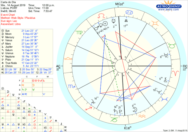 O melhor a fazer hoje é abrirmo-nos a novos valores, experiências e perspectivas do que vale ou não a pena defender individual e colectivamente, para o mundo ou mundos em que participamos. O desafio surge inesperadamente com a quadratura da Lua em Aquário a Urano em Touro. Em simultâneo, a quadratura que se desenvolve entre Urano e Mercúrio em Leão reforça a necessidade de não ir atrás do ego naquilo que se pensa ou diz, já que essa identificação choca com a abertura ao novo que os tempos requerem. Sol e Vénus conjuntos em Leão em quincúncio exacto a Plutão em Capricórnio revelam lados sombra da ordem das coisas que nos impedem de brilhar com a espontaneidade desejada, dada a tensão entre o que queremos ser e o que somos ou podemos ser. Estamos a caminho da polaridade máxima entre o Sol e a Lua de Leão para Aquário, amanhã quinta feira na Lua Cheia e para isso quanto maior o esforço de articulação já hoje entre o sentido de identidade e o sentimento de pertença, entre o eu e os outros mais facilmente dobraremos esse cabo.