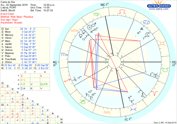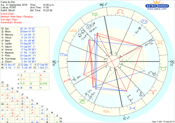Sol e Marte em Virgem, ambos ainda em trígono a Plutão em Capricórnio permitem fazermos muitas coisas, com determinação e sentido prático, em qualquer dos dias do fim-de-semana. A Lua em Gémeos no sábado, em quincúncio a Plutão e quadrada a Marte Sol acorda e revela tensões antigas das relações que preferíamos que fossem estáveis e agradáveis, com Mercúrio regente do Gémeos e Vénus conjuntos em Balança.