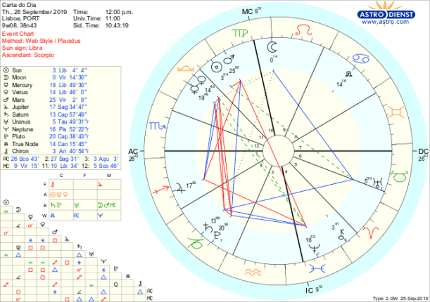 Não pode ficar folha por virar hoje e amanhã já que, apesar do desejo de que nada se altere e haja paz e equilíbrio nas relações e nas contas, há energias muito intensas a afectar o que se pensa e o que se diz e que trazem à tona revelações cujo impacto pode alterar o fiel da balança. É de facto em Balança que se encontra o Sol, Vénus e Mercúrio, este último cuja quadratura a Plutão obriga a descobrir verdades profundas através de conversas, investigações ou análises dos equilíbrios de poder. Estes também estão abalados pela quadratura de Vénus em Saturno que revela pouca simpatia pela boa vontade e obriga a pragmatismo na nossa abordagem aos outros. A Lua em Virgem, em trígono a Urano em Touro é o outro estímulo do dia para analisarmos com olhos novos o que está em causa, abertos a novos valores que permitam novas leituras da situação já que há também algum desconforto com a oposição do Sol a Quiron em Carneiro- não podemos fazer o que queremos porque corremos o risco de destabilizar ainda mais os equilíbrios delicados existentes.