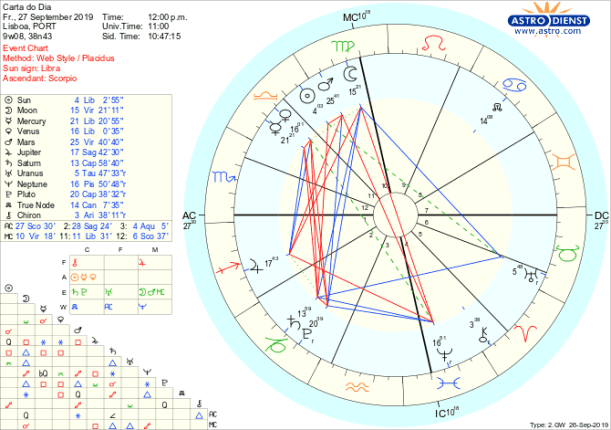 Estamos em vésperas da Lua Nova de Balança, tempo de ajuste e estabelecimento de novas bases em relações pessoais, contratuais, jurídicas e políticas. Amanhã ao final da tarde, Sol e Lua unem-se nos 5 graus da Balança onde também se encontram Vénus e Mercúrio, numa combinação energética que nos obriga a focar completamente no modo como nos relacionamos e o que esperamos dos outros, face ao que temos para dar. É para isso que nos preparamos hoje cuidando com atenção ao detalhe daquilo que é preciso mudar estruturalmente antes de passarmos à fase seguinte na ordem e objetivos dos relacionamentos, qualquer que seja a sua natureza. Vai mesmo ser preciso fazer alterações profundas, vamos ter de largar amarras para poder avançar e ir ao fundo dos assuntos e da lógica dessas relações para com tudo bem analisado podermos decidir, em justiça e com pragmatismo o que fica e o que vai, porque novos valores se levantam, com Urano em Touro em quincúncio ao Sol, e Vénus e Mercúrio também em Balança em quadratura a Saturno e a Plutão em Capricórnio. Saturno em conjunção ao Nódulo Sul é a confirmação de é um momento crucial para largar o que faz parte da nossa ordem estrutural, casa, trabalho ou poder que não interessa levar para o futuro e assim no liberta para novas negociações e acordos.