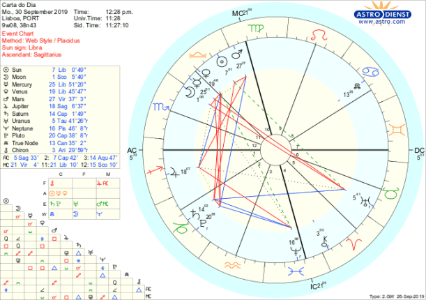 A semana começa com sentimentos intensos porque somos confrontados com a impossibilidade de controlar tanto quando desejamos.Temos mesmo de mudar de perspectiva e de valores apesar da tendência para resistir. No fundo, depois da Lua Nova em Balança do fim-de-semana – que nos propôs entrar numa nova fase de acordos e equilibrios nas relações, – vamos nesta segunda-feira começar os ajustes necessários para que realmente estejamos nos relacionamentos pessoais, financeiros ou políticos de outra maneira e com novos valores. Sol, Vénus e Mercúrio continuam em Balança a pôr o foco, a lógica e o empenho na justiça entre o que damos e o que recebemos mas Vénus está em quadratura a Plutão em Capricórnio o que nos obriga a encarar, sob tensão, forças maiores que exigem rupturas e mudanças nos equilíbrios desejados. Face a isso queremos não perder controlo com a entrada da Lua em Escorpião e passionalmente agarramos-nos a ilusões de segurança emocional sem querer que nada mude. Mas a oposição a Urano em Touro não permite que assim seja e há que aceitar novos valores, novas perspectivas, novos dados concretos que forçam igualmente o novo equilibrio de forças pessoal, financeiro, contractual, político. O desafio a manter a calma é grande mas o maior poder que podemos exercer é sobre nós próprios de forma a abrir mão do que tem mesmo de mudar.