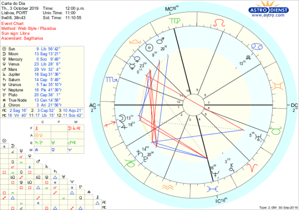 Estas mudanças de registo implicam: com Mercúrio em Escorpião, toda uma lógica de investigação, analise e debate, a fundo, do que pode mudar, como e o controlo que temos ou não temos no processo; com Marte a ingressar em Balança, a vontade, capacidade, gesto, ataque ou defesa, energia, acção, desejo estão orientados para a negociação mas isto não que dizer manter o status-quo, significa sim que há o impulso de definir novas regras do jogo e que nos empenhamos diplomaticamente nesse processo de transformação; com Plutão estacionário em vias de entrar directo, tudo o que estava pendente desde o final de Abril, quando entrou retrógrado, e que devemos ter resolvido entretanto, pode agora passar a fazer parte do adquirido do passado para nos podermos concentrar com um motor potente nas transformações de fundo da ordem de que dependemos, seja ela em casa, profissional, ou estrutural, na ordem política ou financeira.