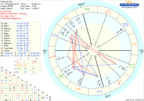 Há, no entanto uma tensão muito grande entre os equilibrios desejados e os limites, regras e responsabilidades estruturais. A quadratura do Sol em Balança a Saturno em Capricórnio traz resistências e frustrações às nossas melhores intenções. É melhor por isso não querer ir muito depressa e aproveitar sim a possibilidade de contactos do dia. Face a ordem ou à autoridade, podemos aproveitar para redefinir objectivos e com isso redefinir também o que queremos das relações mas os resultados podem ter de esperar até à Lua Cheia de 13/14 quando o Sol fizer a quadratura seguinte a Plutão.