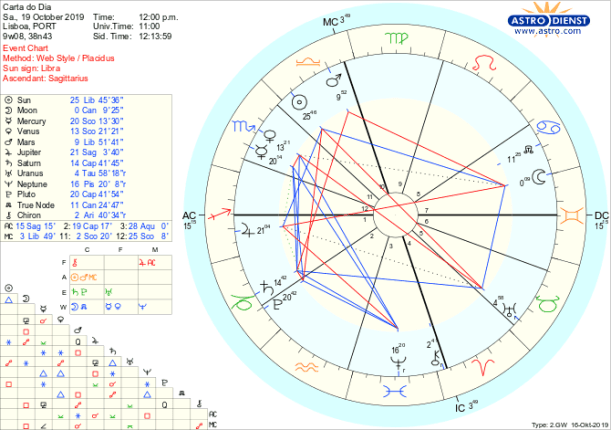 A conjunção, domingo de manhã, da Lua ao Nódulo Norte dá-nos um vislumbre do que desejamos atingir e que somos capazes de defender com paixão, graças ao trígono a Vénus em Escorpião. Nada se faz sozinho e os equilibrios de poder estão em fase crítica de revisão depois da quadratura do Sol em Balança a Plutão em Capricórnio no início da semana e antes que o Sol entre em Escorpião no arranque da próxima semana em Lua Nova, o início de um ciclo lunar e solar de regeneração e de controlo do que realmente nos interessa.