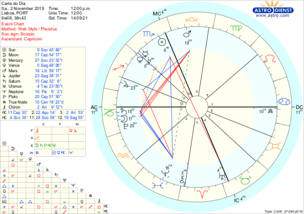 No sábado a Lua em Capricórnio faz conjunção a Saturno e a Plutão em Capricórnio, quadratura a Marte em Balança e sextil a Neptuno em Peixes. Uma Lua em Capricórnio traz-nos o desejo de ordem, progresso, futuro estruturado, é bom para arrumar a casa, a profissão, o país mas também pode ser um choque porque aquilo a que aspiramos não corresponde à realidade e, por defeito ou por excesso, temos de rever expectativas e encarar os conflitos consequentes nas relações.