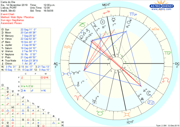 São bem diferentes as energias de sábado e de domingo. Na manhã de sábado continuamos como na sexta focados em questões de casa, familia, país, na perspectiva das mudanças que há a fazer nessas áreas de vida das quais depende a nossa segurança emocional ou nacional. A Lua ainda está em Caranguejo, faz oposição a Saturno, Plutão e Vénus em Capricórnio e depois de alguma turbulência parece que conseguimos encontrar o grau de satisfação de quem arrumou o que havia para arrumar e com Vénus em semi-sextil ao Sol em Sagitário até nos convencemos que estamos a cumprir o desígnio que nos foi dado.