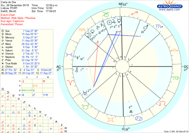 Este fim-de-semana é para sair de casa, ver amigos, ter experiências novas, abrirmo-nos ao mundo, não de uma forma disfuncional mas sim dentro de um plano, aliás um grande plano que satisfaça o nosso desejo tanto de ordem como de novidade. Tanto sábado como domingo a Lua está em Aquário em conjunção a Vénus o que garante empatia para com quem encontramos e verdadeiro interesse sobre o que de novo podemos encontrar, com Urano em Touro regido por Vénus a mostrar ínumeras possibilidade de investir na diferença. A lógica que deve presidir às nossas opções é dada por Mercúrio que transita de Sagitário para Capricórnio em trígono a Urano: novas ideias de aplicação inteligente em estruturas de vida, casa, trabalho, poder, que queremos expandir de forma controlada com Sol e Júpiter conjuntos em Capricórnio- onde também se encontram Saturno e Plutão a caminho da conjunção exacta no início de Janeiro. Temos assim Saturno a dominar as energias dos Céus com Mercúrio, Júpiter, Sol, Saturno e Plutão em Capricórnio e a Lua e Vénus em Aquário cujo primeiro regente é também Saturno. Resultado, um tempo de de grandes responsabilidades, para arrumar questões do passado, fechar ciclos e em simultâneo desenvolver um novo sentimento de segurança, em casa, em familia, no país ou um novo nível emocional em que estamos menos vulneráveis e mais em controlo das mudanças em curso. Isto também porque o Sol e Júpiter estão conjuntos ao Nódulo Sul, energia a articular com o Nódulo Norte em Caranguejo, salto esse que não deve ser dado sem grande atenção ao que se diz. Pensar antes de falar é fundamental com Mercúrio em quadratura a Quíron sem esquecer que há vida para além do palpável e que há que encontrar um equilíbrio entre a razão e o sentir. Só assim teremos as respostas que desejamos dos outros com a Lua em Aquário conjunta a Vénus.