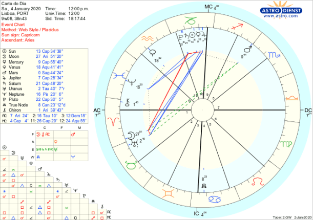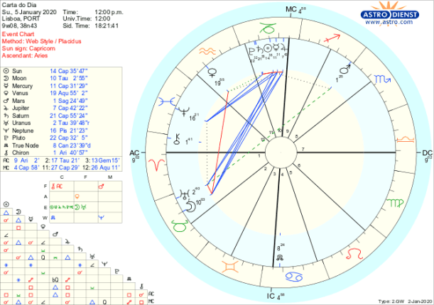 As energias mudam por volta das 4 da tarde de sábado com a passagem da Lua de Carneiro para Touro – o que faz que deixemos de ser movidos pelo desejo de acção para passarmos a inquietar-nos com a segurança material, objectos ou dinheiro que receamos nos escapem quando a Lua fizer conjunção a Urano já na tarde de sábado. De facto, as surpresas continuam a ser inevitáveis com esse aspecto da Lua e também explosivas com o quincúncio de Marte em Sagitário a Urano, quincúncio esse ao qual se junta a Lua, um perigo de inconsistência emocional em que por um lado queremos proteger o que é nosso, valores, casa, familia, país mas por outro somos impelidos a iniciativas cujo impacto será o oposto do efeito desejado, como verdadeiros tiros no pé. Satisfazemos o impulso e carências com o trigono de Marte a Quíron mas sofremos no íntimo as consequências com Marte quincúncio a Urano e à Lua. De resto, continuamos a caminho da conjunção Sol, Saturno, Plutão, eclipse da Lua a entrada de Urano directo, entre os dias 10 e 12, picos astrológicos de máxima tensão e arranque de mudança de ciclo de organização de vida, pessoal e colectiva cujos sinais se fazem já sentir…