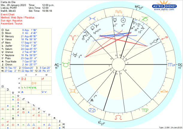O impulso de agir não nos pode toldar a perspectiva sobre o que é de facto fundamental e adequado fazer. Não só a clareza de espírito é um desafio como a sensibilidade com que intuímos relações e valores pode ser toldada pelo excesso de ambição. Importante é fazer uma síntese inteligente e dizer aos outros o que queremos inovar. É a Lua conjunta a Quíron em Carneiro que nesta quarta feira nos ilumina todas as carências ou frustrações sobre a nossa capacidade de tomar iniciativas o que nos pode levar a reagir por excesso, com afirmações desajustadas e confusas pela quadratura de Marte regente do Carneiro, em Sagitário, em quadratura a Vénus e Neptuno em Peixes. Mas estes factores de ilusão, sonho e também de sensibilidade e inspiração estão em sextil aos planetas em Capricórnio-Júpiter, Saturno e Plutão criando oportunidades para gerir com menos rigidez as mudanças que de facto temos em mão, em casa, no trabalho ou na política. É como se houvesse um plano fantasioso ou inspirado, inovador, diferente, que queremos a todo o custo por em marcha mas que depende mais da capacidade de o comunicarmos do que dos gestos em si para o pôr em prática. O Sol e Mercúrio em Aquário, com Urano seu regente em Touro simbolizam essa comunicação sobre o nosso posicionamento no mundo e o que de diferente queremos valorizar. Controlar os impulsos e escolher as palavras é a chave do sucesso do dia.