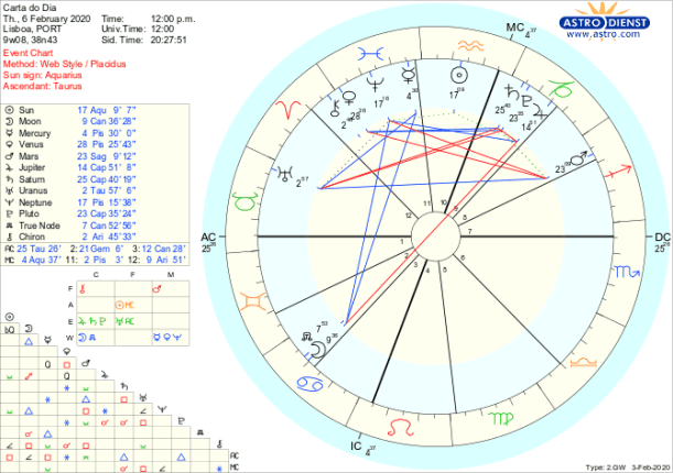 Sentimos esta manhã que estamos no caminho certo. Em família, em casa, interiormente tudo parece seguir um plano que tem o seu quê de sonho mas também de pragmatismo. É a Lua em Caranguejo, conjunta ao Nódulo Norte e em trígono a Mercúrio e a Neptuno em Peixes, em oposição a Júpiter em Capricórnio, que nos orienta para uma nova e maior segurança emocional num quadro idealizado mas ordenado. Sintonizados emocionalmente com o nosso íntimo e com as respostas dos outros conseguimos hoje, com empatia, fazer tudo o que houver a fazer que se traduza na criação de novas estruturas de vida em que possamos marcar a diferença e estabelecer novos valores tal como requer o Sol em Aquário regido por Urano em Touro.