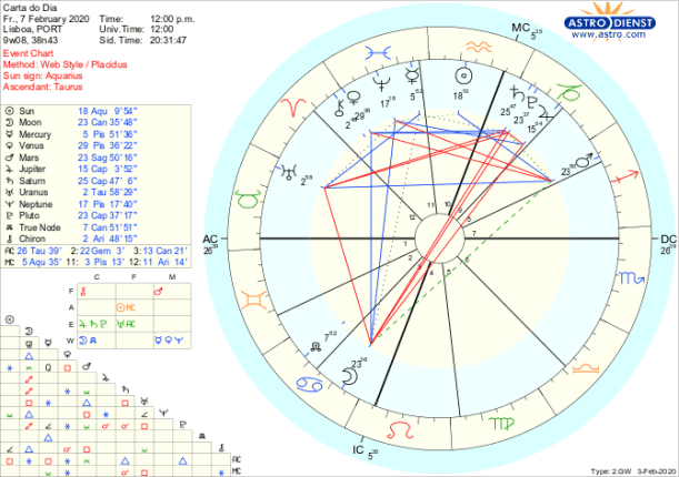 Há forças maiores que nos obrigam hoje a repensar a organização da casa, da família ou do nosso íntimo, como se a segurança emocional estivesse a ser abalada para que se lhe dê outra dimensão, no fundo mais próxima do que idealizamos. A Lua em Caranguejo faz oposição a Plutão e a Saturno em Capricórnio e daí o sentimento de pressão externa, de limites, responsabilidades e também de estados emocionais extremos que obrigam a reformular a que é que nos podemos agarrar ou não. Como a Lua de seguida entra em trígono a Vénus em Peixes, tudo suaviza e resolvida a tormenta conseguimos entrar num patamar de idealização do que vamos de seguida orgulhosamente fazer, quando amanhã Vénus passar para Carneiro e a Lua para Leão.