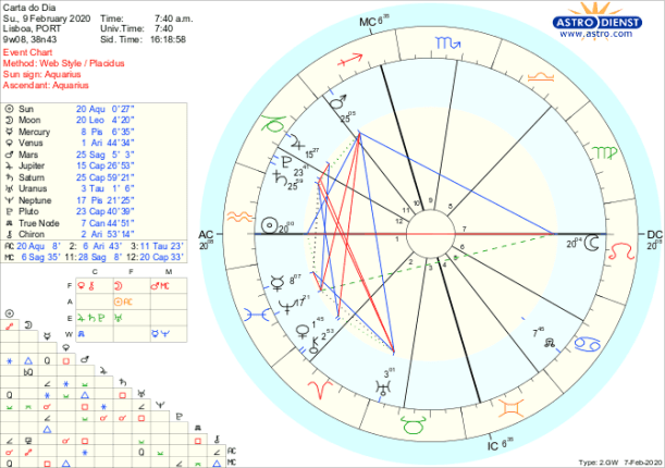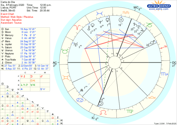 O grande desafio do fim-de-semana é o de sermos capazes de reduzir ego e dramatismo à dimensão do que os outros aceitam de nós. Há uma Lua Cheia em Leão oposta ao Sol em Aquário na manhã de domingo mas a tensão entre o individualismo e o nosso lugar no mundo faz-se sentir já no sábado. Com a Lua em quadratura a Urano em Touro e trígono a Vénus recém entrada em Carneiro conjunta a Quíron vamos querer levar o impulso por diante correndo o risco de criar situações disfuncionais em que satisfizemos o instinto mas os resultados não são os desejados. No domingo a oposição da Lua ao Sol extrema essa tensão entre que queremos ser e o que é ajustado fazer para não perder apoios, mais ainda porque um trígono da Lua a Marte em Sagitário nos dá aparantemente toda a razão para não mudar de atitude individualista. Só que que uma Lua Cheia não deve estimular a separação entre as energias do instinto e as do ser. Serve sim para procurarmos o equilíbrio,neste caso entre o sentido de identidade e o sentido de pertença. A ajudar a resolver os conflitos de interesse entre o Eu e os Outros temos um trígono de Mercúrio em Peixes ao Nódulo Norte em Caranguejo que a Lua rege: a pensar e a falar docemente conseguimos criar a estabilidade emocional envolvente necessária a amenizar tensões e a favorecer o trabalho em equipa.