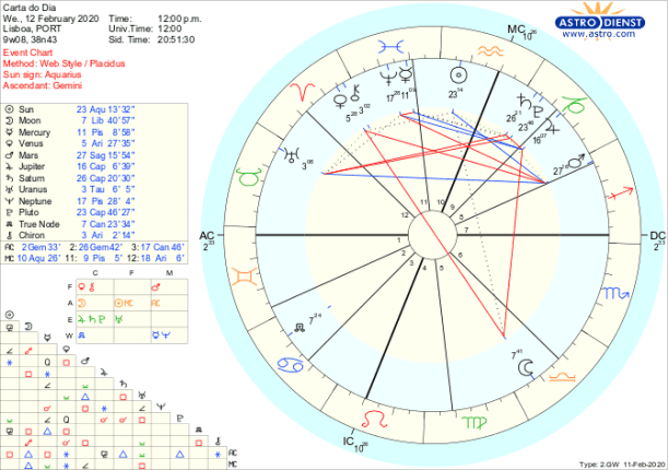 Fazer o que nos apetece ou tentar acordos com os outros é o grande dilema do dia. Por um lado não queremos conflitos – a Lua está em Balança- mas por outro o impulso ou paixão de agir – Vénus em Carneiro conjunta a Quíron opostos à Lua – faz-nos oscilar entre um sim contrariado e um não envergonhado. A complicar esta tensão temos uma quadratura de Vénus e da Lua aos Nódulos em Caranguejo e Capricórnio. Sabemos que temos de procurar segurança emocional, em casa, família, tribo ou país mas não sabemos bem como, apenas que há uma velha ordem a largar e que o ideal seria estamos em harmonia com tudo e todos em vez de nos sentirmos tão fortemente impulsionado a não olhar a meios para atingir os fins. É nas relações pessoais, amorosas ou financeiras que o desafio de harmonia é maior e só se resolve se estivermos muito claros sobre o que idealizamos a longo prazo -já que o imediato traz dissonâncias- com a ajuda de Marte regente de Carneiro, em trânsito em Sagitário e Júpiter seu regente em transito em Capricórnio em sextil a Mercúrio e Neptuno em Peixes.