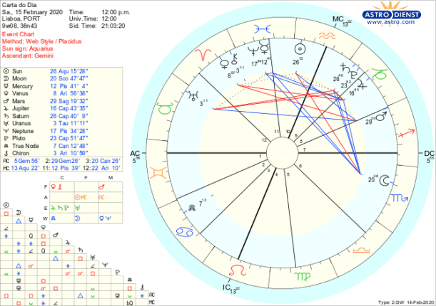 Tanto sábado como domingo Urano em Touro e Quíron em Carneiro, em semi-sextil, revelam o que em nós nos causa insatisfação, no modo como agimos, nos impulsos ou na incapacidade de agir e apontam novas soluções porque nos mostram outros valores a adoptar de futuro, outras guerras a travar, outros actos redemptores de carências antigas. Marte que rege Quíron e Vénus em Carneiro passa de sábado para domingo de Sagitário para Capricórnio e de um dia para o outro temos de passar das ideias à prática, do desenho à construção, ou também do projecto à demolição necessária a uma posterior reconstrução. Marte vai até ao final de Março atravessar o Capricórnio onde vai fazer conjunção a Júpiter na semana de 18, a Plutão na semana de 23 e a Saturno já em Aquário no dia 31. Temos por isso a partir de domingo caminho aberto à concretização de muitas das mudanças que temos vindo a planear mas que ainda não estão plenamente realizadas. É um trânsito ideal para fazer obras, para cuidarmos dos ossos, dentes e estrutura física em geral e também para eliminar tudo o que precise de facto de ser renovado. A Lua no sábado em Escorpião regida por Marte ainda em Sagitário e quadrada ao Sol em Aquário é indício de dificuldades que podemos encontrar quando pretendemos controlar tudo e todos. Apenas podemos controlar o que está nas nossas mãos e essa consciência e contenção é o maior triunfo de sábado. No domingo com a Lua em Sagitário, regida por Júpiter em Capricórnio e em trígono aos planetas em Carneiro, com Marte que os rege já em Capricórnio são as tarefas criativas em que possamos dar o melhor de nós de maneira estruturada e pragmática que nos darão maior satisfação e trarão melhores resultados a longo prazo.