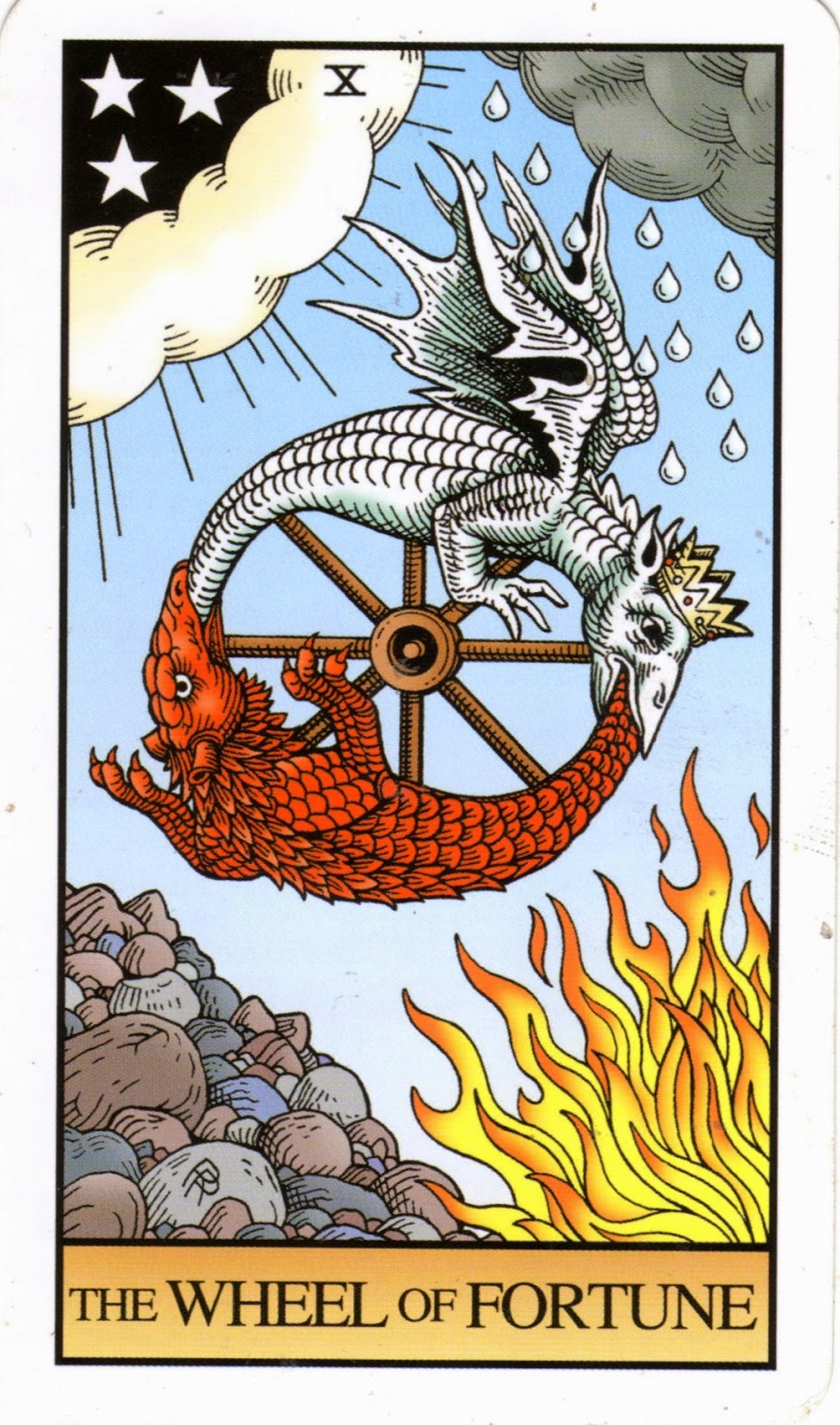 No Tarot, representa o princípio da Mudança. Assim considerada, as leis da Física também falam dela, ou do conceito que lhe subjaz, quando contam do quanto o perpétuo dinamismo entre atracção e repulsão, entre energia positiva e negativa, é a condição maior para a existência de cada partícula que constitui a matéria. Por este prisma, é como se a ideia de mudança da “roda” seja, talvez, a força maior, a que reina sobre a matéria, sobre o que existe no universo.