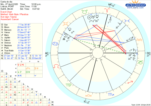 No entanto, nem tudo está nas nossas mãos e continuam a reinar os limites e responsabilidades individuais e colectivos que Saturno em Aquário comanda. O quincúncio entre Saturno e a Lua e o Nódulo Norte conjunto à Lua simboliza exactamente essa tensão que apela ao conservadorismo.