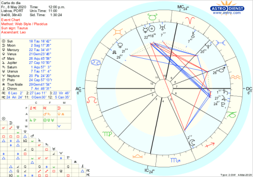 São pequenos passos, todos os dias, para a adopção de novas referências, de novas bases de segurança, material, financeira, palpável, novos gostos e valores a que, com Urano em Touro temos de nos abrir. Hoje e amanhã com Mercúrio em Touro em trígono a Plutão é possível falar com inteligência e profundidade desses processos de transformação de forma a facilitá-los para quando o Sol, dentro de dias, a 14 e 15 de Maio, fizer ele mesmo trígono a Plutão. Vai ser também nessas datas que Vénus vai entrar retrograda em Gémeos e por isso estamos desde já a debater o que é seguro mudar e que hipóteses vai ser preciso re-analisar.